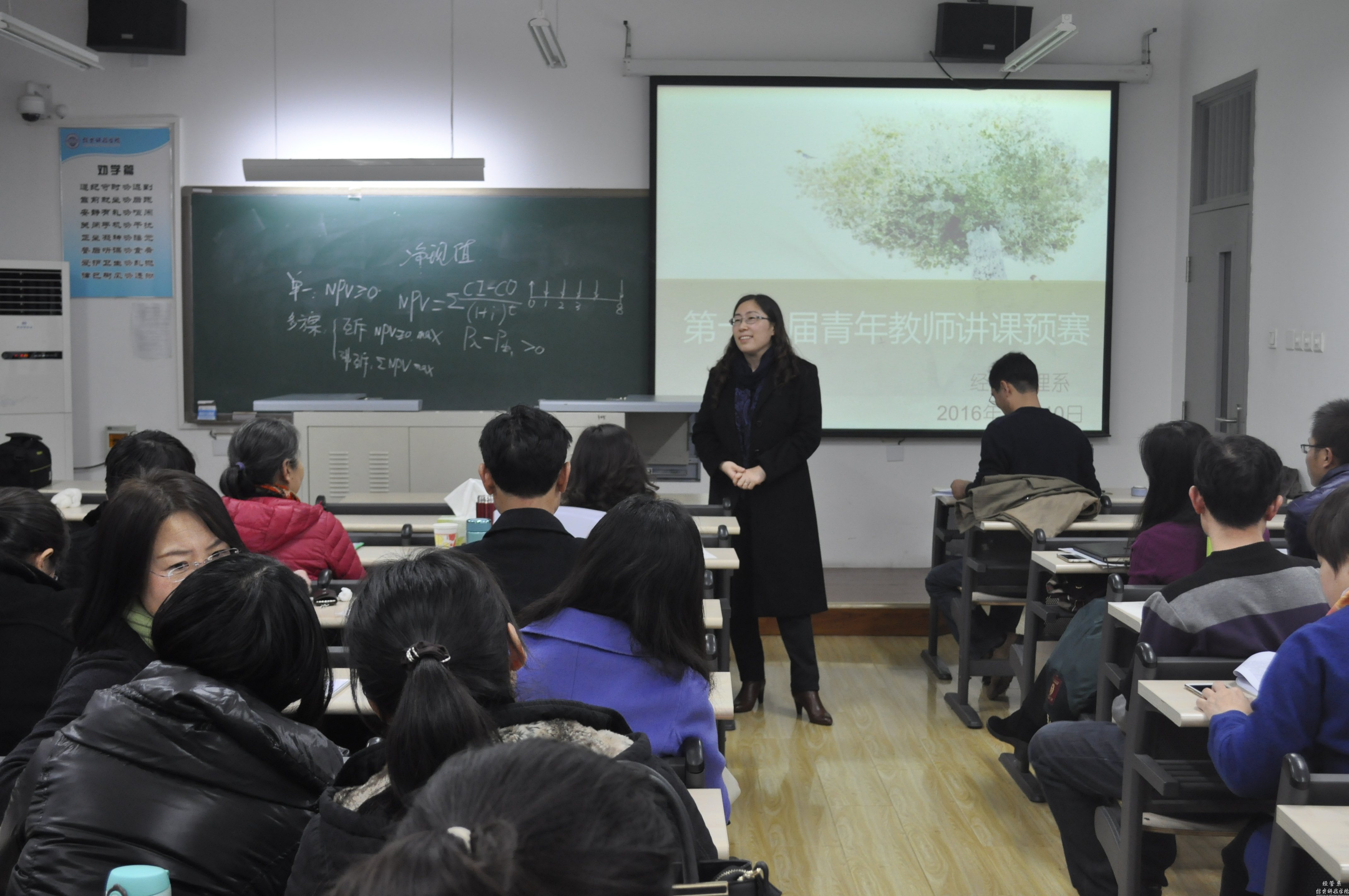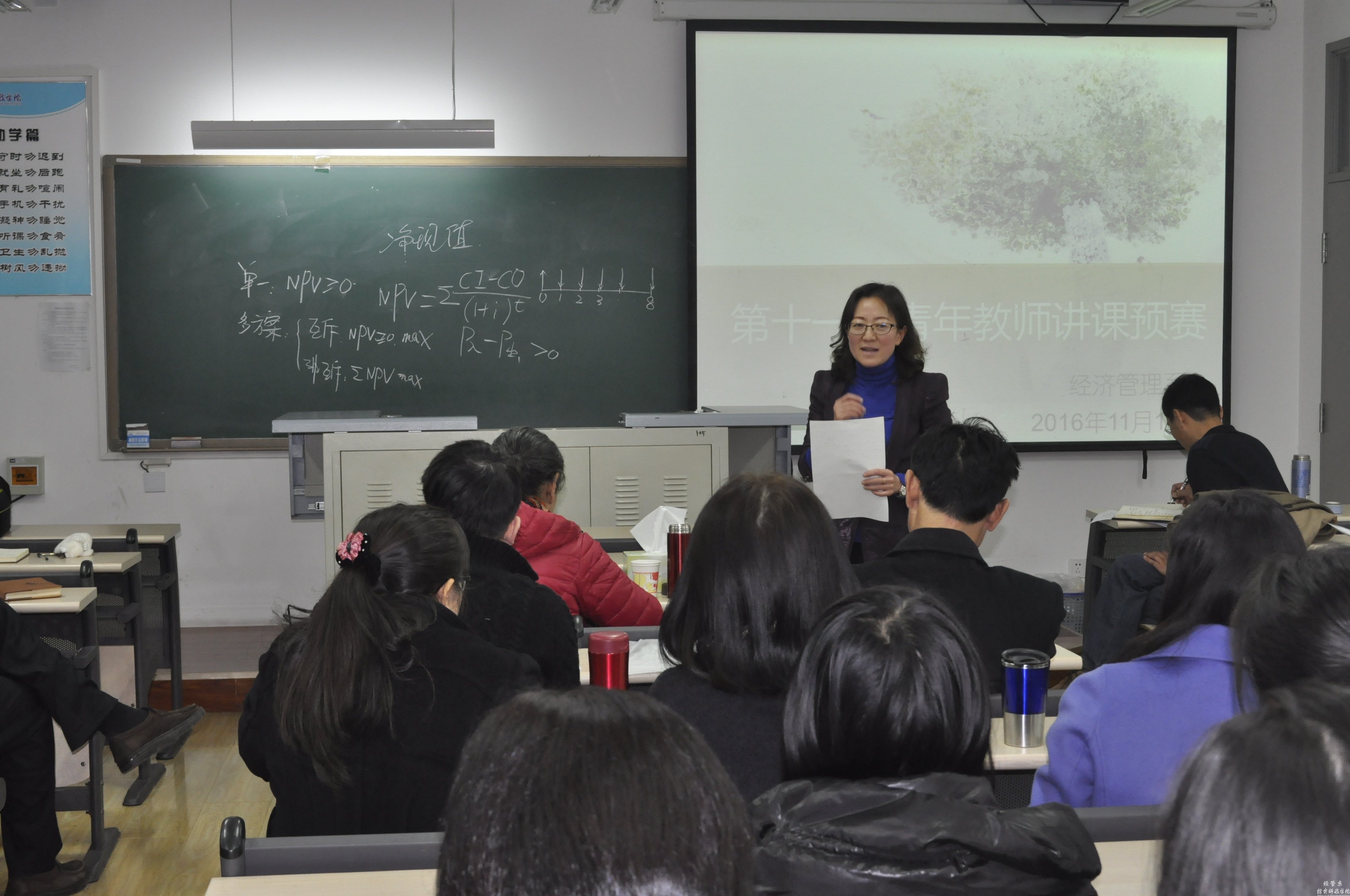 为充分调动教师课堂教学研究及教学改革的积极性,提高教学水平,经济管理系于11月10号下午在明略楼106教室组织了经济管理系第十一届青年教师讲课预赛,比赛邀请了校级督导专家魏淑华,黄萍、金融教研室主任陈龙杰、工商管理教研室主任宋晓刚、公共事业管理教研室主任李海君及系级督导刘新梅、杨月巧、刘琳8位老师担任此次评委,系副主任唐彦东老师担任主持人。