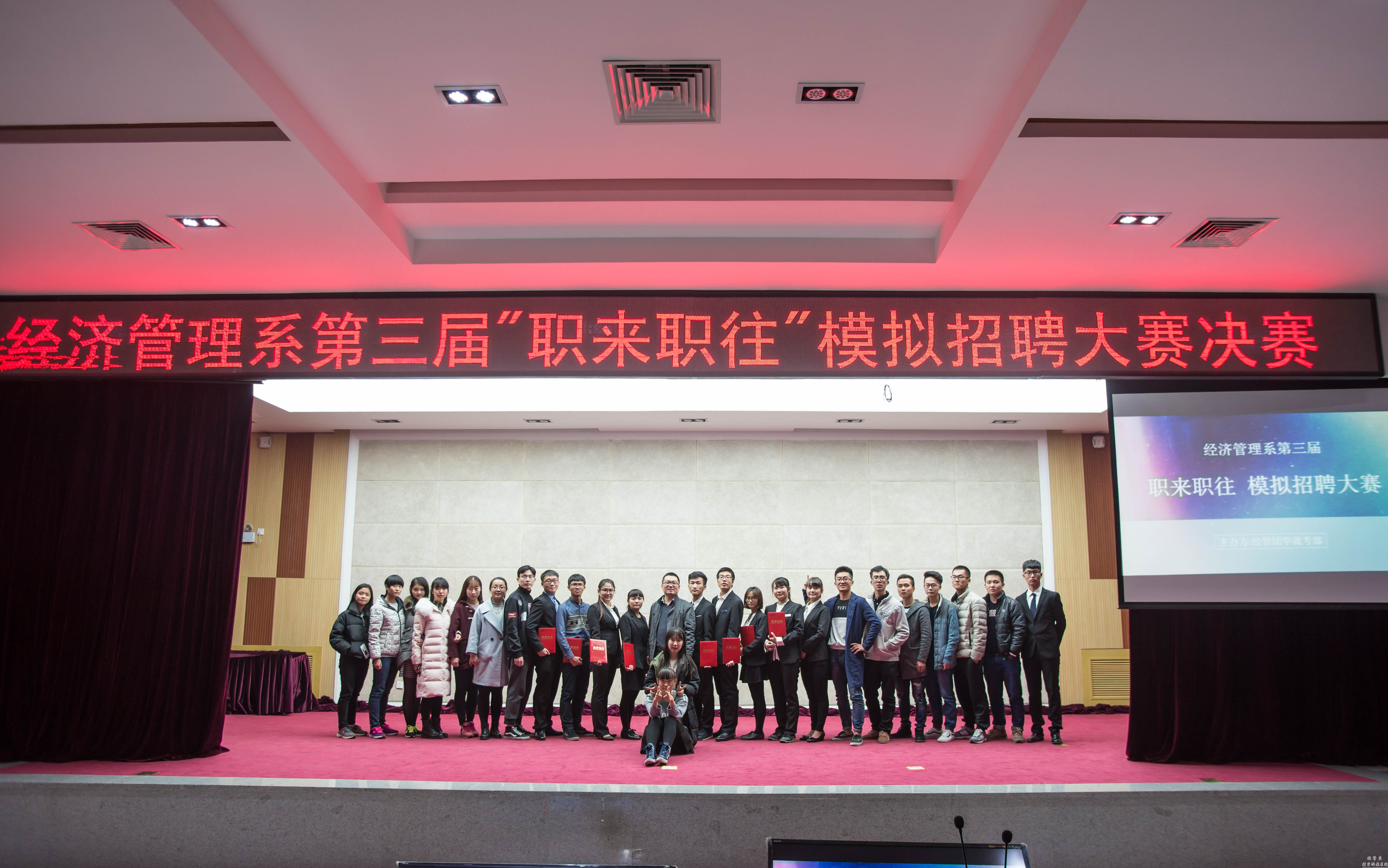 为了提高我系员工的应聘和就业能力,增强员工的心理素质,提高员工应聘能力和社会竞争力经济管理系于2016年11月27日在主楼332会议室举行了经济管理系第三届“职来职往”模拟招聘大赛决赛。出席本次活动的嘉宾有经济管理系党总支书记谢长旺老师、经济管理系团总支书记郑建锋老师、辅导员李魁明老师以及支员工会代表。
