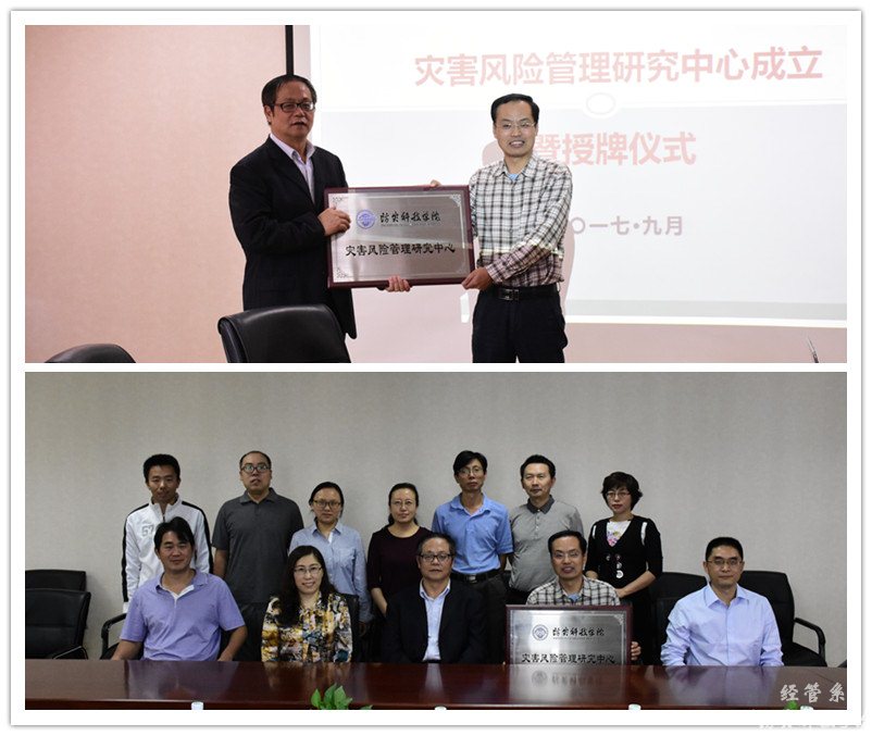 9月29日下午,灾害风险管理研究中心成立暨授牌仪式在经济管理系举行。公司副经理迟宝明教授出席仪式并授牌,参加授牌仪式的还有科研处副处长蔡晓光教授、系主任刘翠侠教授、系党总支书记谢长旺副教授、系副主任唐彦东教授。