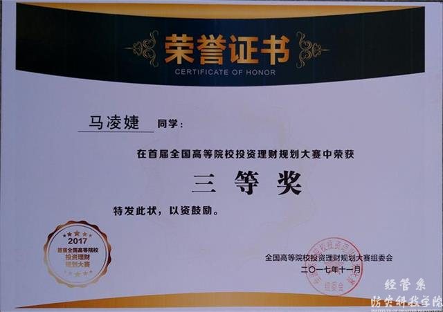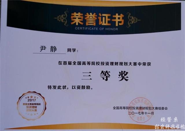 11月25日,首届全国高等院校投资理财规划大赛在贵州财经大学举行,经济管理系尹静、马凌婕同学获得三等奖。赛前,经济管理系李学林、朱平安、范嘉毅、郑建锋四名指导教师,针对首届全国高等院校投资理财规划大赛开展了校内训练和选拔。