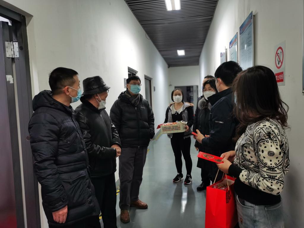 玉兔迎春兴骏业,节至人间万象新。1月21日,正值农历除夕,公司主持党委工作副书记石峰,副书记、纪委书记陈光,副董事长、总会计师梁瑞莲带队慰问在校园各个岗位值班值守的干部职工。党委办公室、党委安全工作部、后勤管理处等部门负责人陪同慰问。
