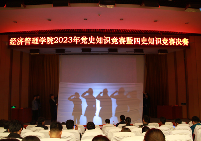 经预赛、初赛,共4支队伍进入决赛。比赛分为“百炼成钢”、“群雄逐鹿”、“于微论党”三个环节,设置了丰富的竞答题目,以党史竞答为主线,生动展现中国共产党带领中国人民筚路蓝缕,浴血奋战,百折不挠的辉煌历程,既考察了选手们的基础知识,又给予选手自由发挥的机会。4支队伍认真思考,自信作答,在决赛赛场上大放异彩。此外,决赛各环节间隙穿插了党史舞台剧《时空新中国》和影子舞《百年风华》。舞台剧《时空新中国》中演员的精彩表现让观众们潸然泪下,更加领悟到新中国成立之不易;影子舞《百年风华》生动形象的演绎了党的发展历程,使观众身临其境的感受到了党奋勇向前的精神风貌。