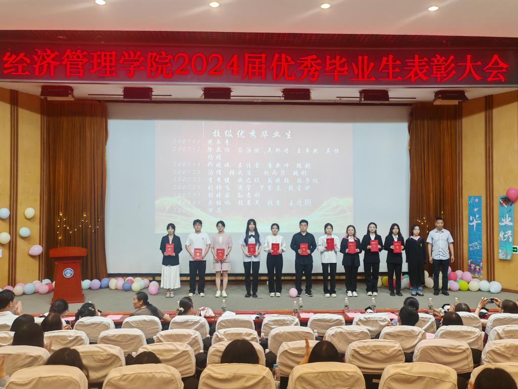 表彰大会上,副经理李学林老师通报2024届毕业生情况,宣读学位授予的决定。陈杰老师宣读了优秀毕业生表彰决定,与会领导老师为优秀毕业生颁发证书。张晨昊同学代表毕业生作了深情的发言,党总支书记谢长旺对即将离开校园走上社会的毕业生提出了殷切希望,希望毕业生树立风险管理意识、养成终身学习习惯、勇于坚持和担当。