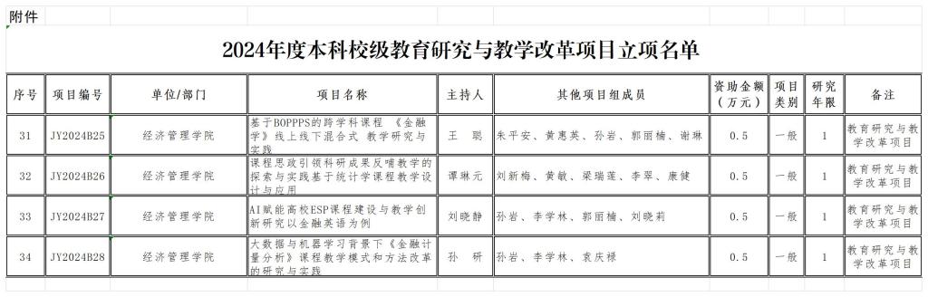 近日,公司高等教育研究所发布了《关于公布2024年度校级教育研究与教学改革项目立项结果及有关事项的通知》,公司共有四个项目予以立项。具体情况如下: