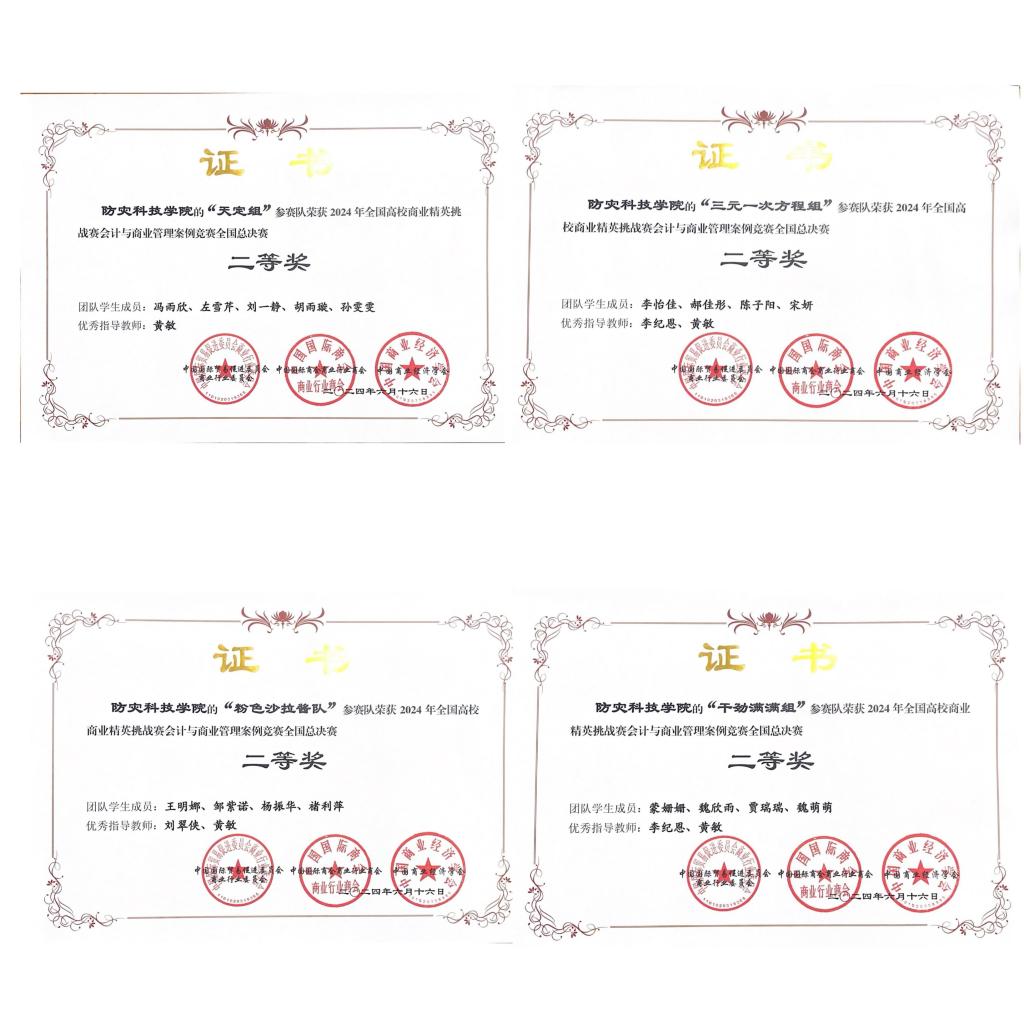 近日,PA游戏官网入口会计学专业员工在2024年全国高校商业精英挑战赛会计与商业管理案例竞赛全国精英赛中荣获全国一等奖1项,二等奖4项。刘翠侠、黄敏、李纪恩老师荣获优秀指导教师奖。
