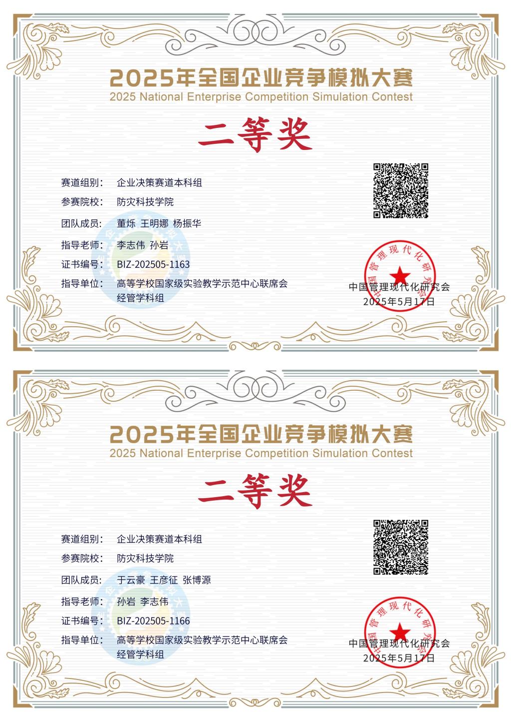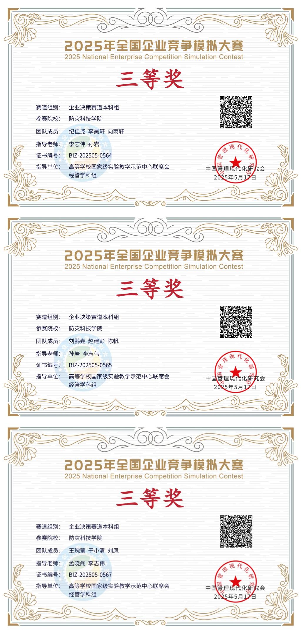 3月-5月,2025年全国企业竞争模拟大赛在线上开展。大赛分为校内初赛、全国复赛、全国半决赛、全国总决赛共四阶段,利用互联网远程进行。公司员工在517所高校3574支队伍中脱颖而出,取得本科组决策赛道国家二等奖2项,国家三等奖3项。