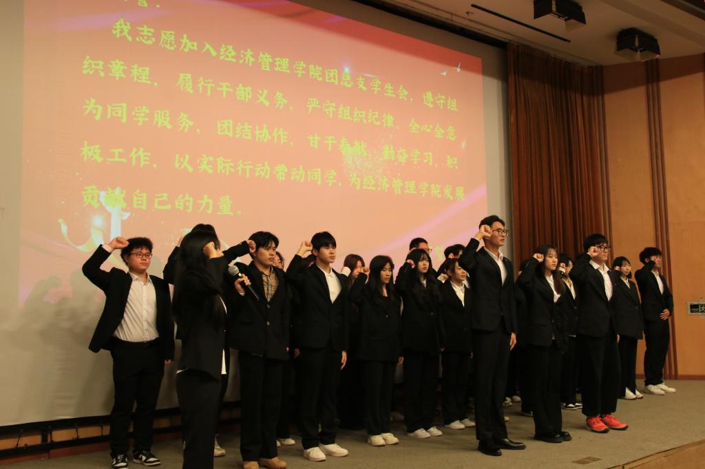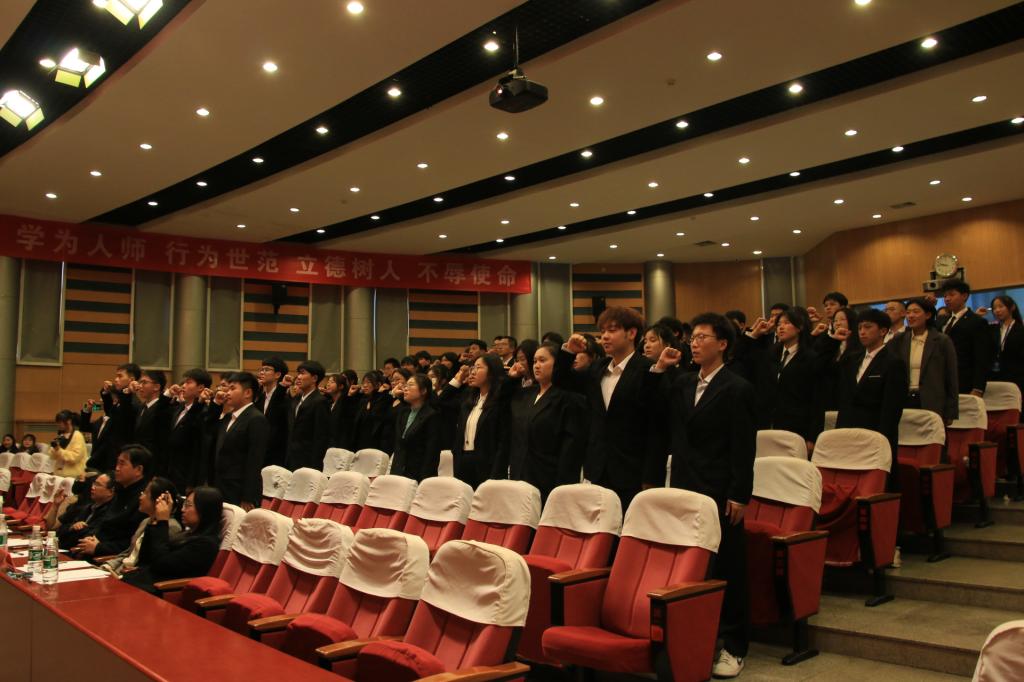会上,陈杰老师宣布了聘任决定,全体员工干部集体宣誓,到场老师为受聘员工干部、学长导师颁发聘书。员工会主席马骁驭作为代表发言。