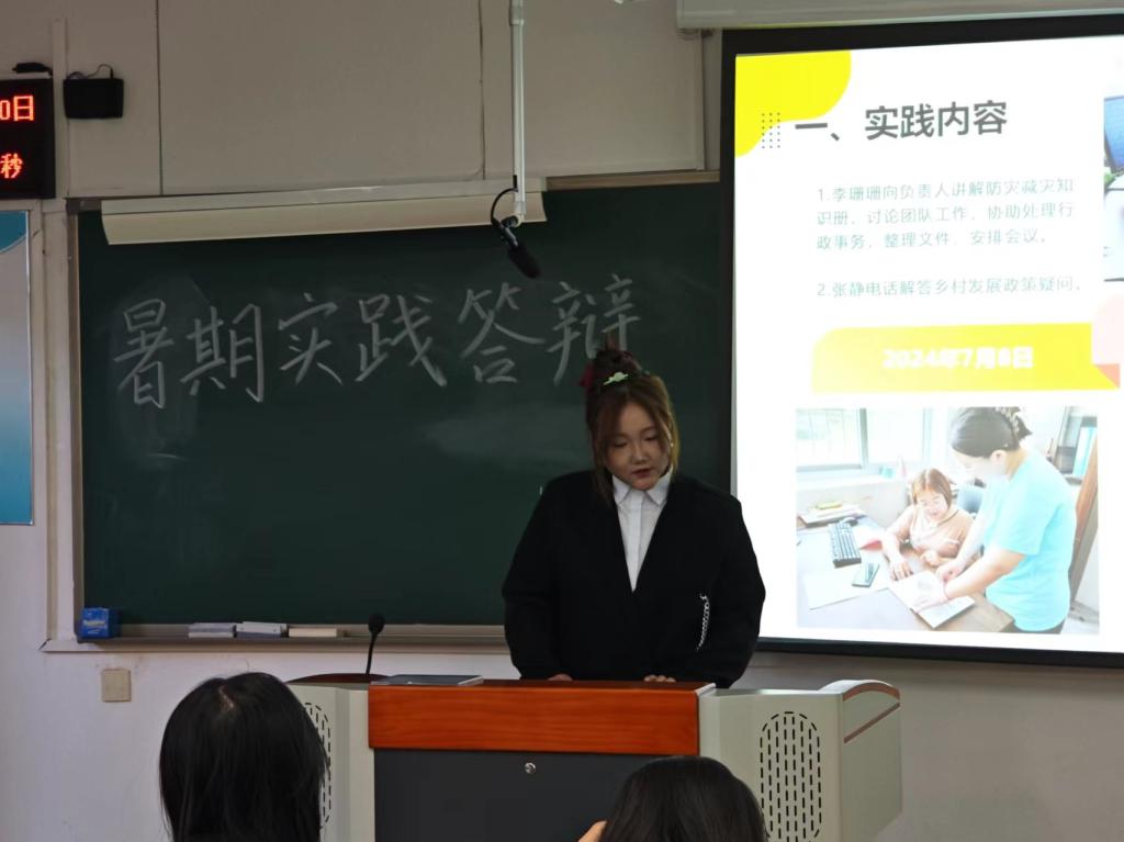 各个团队依次进行了暑期社会实践的汇报与展示。本次暑期社会实践各个团队主要围绕防灾减灾科普宣传主题展开,各团队针对公司特色,向当地群众介绍防震减灾知识,传播校园文化。每一支队伍的精彩光影都凝练在一张张的照片里,一句句的记录里。答辩结束后,老师们依次对同学们的社会实践汇报进行了总结。