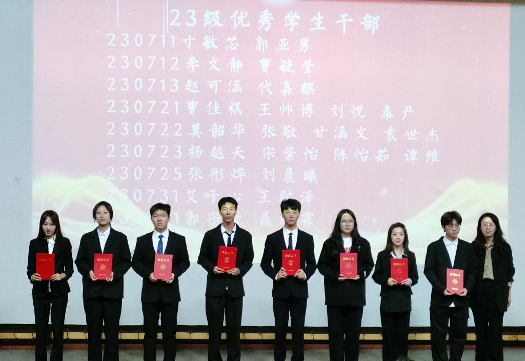 为了进一步推进校风、学风建设,鼓励员工不断提高综合素质和创新能力,围绕立德树人根本任务,培养德智体美劳全面发展的社会主义建设者和接班人。公司于10月17日15点30分在图书馆报告厅举办了优秀员工干部表彰暨“五个一工程”动员大会,公司党总支书记谢长旺、党总支副书记陈杰、党总支专职组织员黄义乾、辅导员孔雅萌、闫粉粉、邓天宇、刘琳、冷智玉老师参加本次大会,全体受表彰员工干部和全体2024级员工参加了本次活动。