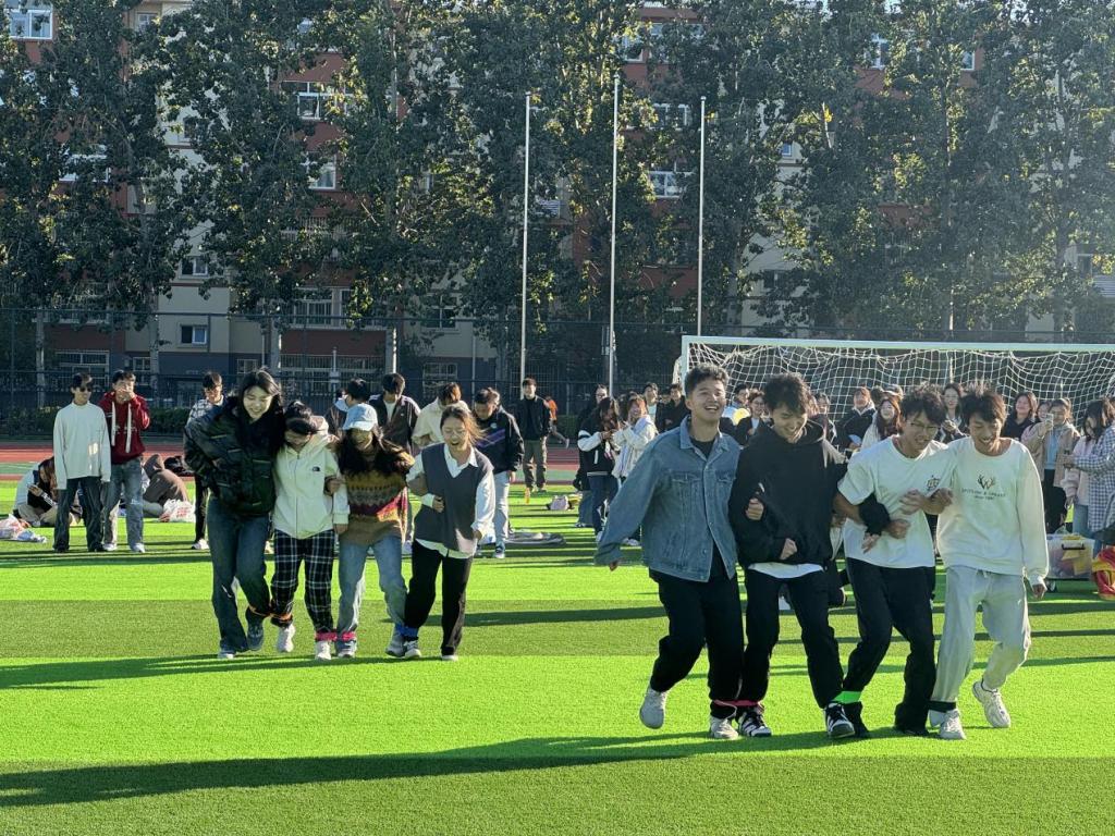 活动期间,按照活动策划分小组进行,每一项活动由四组人员共同参与。包括袋鼠跳、棋子连线、123木头人、两人三足等活动。历时两个半小时,同学们相互配合,彼此信任,团队分工合作,热情高涨。最后,素质拓展活动在集体合影留念中圆满结束。