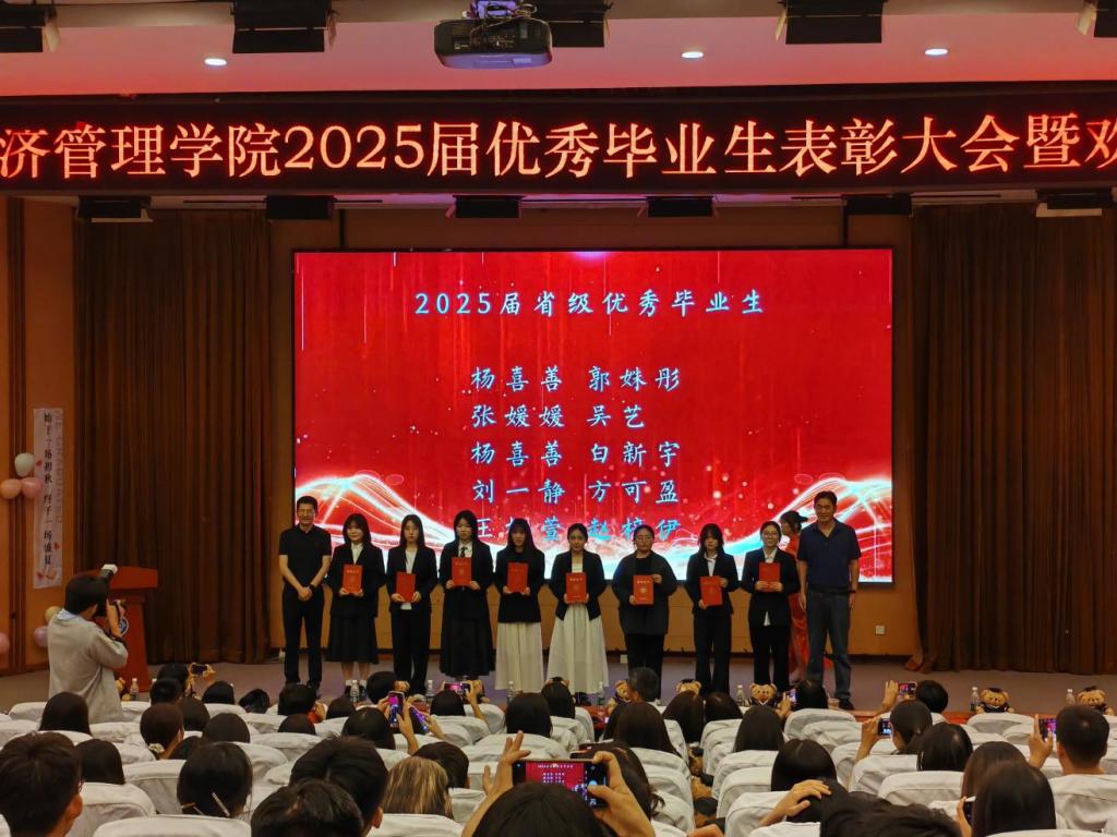 表彰大会上,燕波涛老师通报2025届毕业生情况,宣读学位授予的决定。刘海生老师宣读了优秀毕业生表彰决定,与会领导老师为优秀毕业生颁发证书。吴艺同学代表毕业生作了深情的发言,公司联合党委书记谢长旺对即将离开校园走上社会的毕业生提出了殷切希望,希望毕业生树立风险管理意识、养成终身学习习惯、勇于坚持和担当。