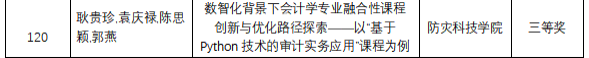 近日,河北省教育厅公布了《河北省教育厅关于公布第八届深化高校创新教育改革论文征集活动获奖名单的通知》(冀高教函〔2025〕24号),公司郭丽楠教师团队以《专创融合理念下<巨灾保险学>课程创新与实践体系构建研究》作品,喜获一等奖且省排序为1号;耿贵珍教师团队以《数智化背景下会计学专业融合性课程创新与优化路径探索--以“基于 Python 技术的审计实务应用”课程为例》作品,喜获三等奖。