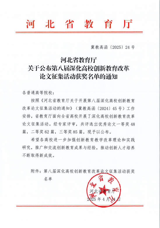 公司教师在河北省深化高校创新教育改革论文征集活动中喜获佳绩