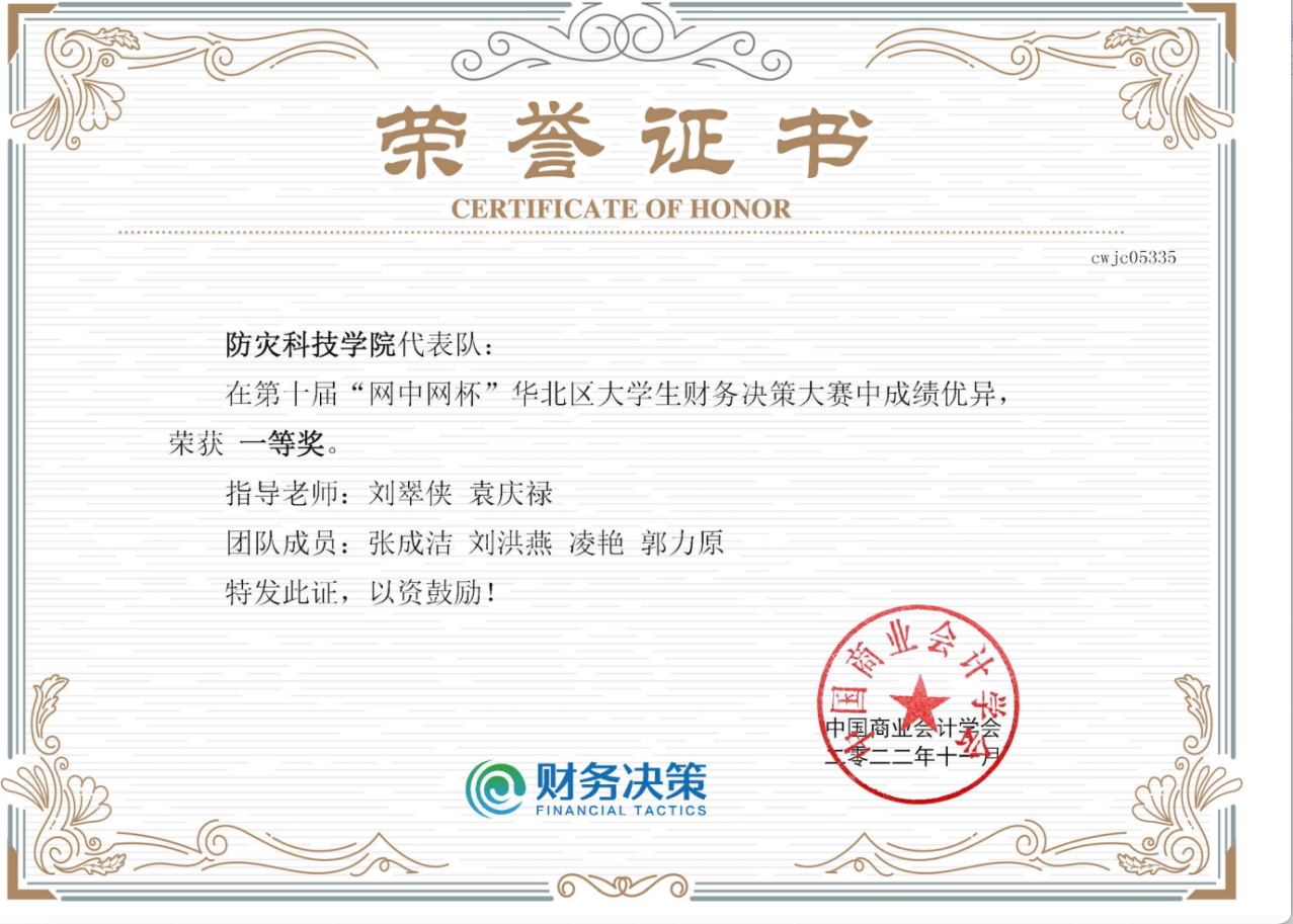 第十届 “网中网杯”老员工财务决策大赛于2022年10月启动。大赛分两个阶段进行。第一阶段为全国大区赛,分为东北区、华北区、华东区、华南区、华西区、华中区六个区域,第二阶段为全国总决赛。大区赛近400余所高校代表队参加,共决出50支代表队晋级全国总决赛。在备赛阶段,指导教师组织了校内赛选拔参赛队伍,在大区赛和总决赛前精心指导解决各种问题。员工也投入大量精力进行备赛,在全国总决赛中,参赛队员克服了疫情原因不能同一处比赛的困难,获得全国总决赛一等奖。财务决策大赛是对员工的企业营运、管理决策、数据分析解读、税务管理、团队协作等核心能力的全方面考察,提升了员工的营运资金管理、投资管理、企业财务分析、全面预算编制及分析能力。