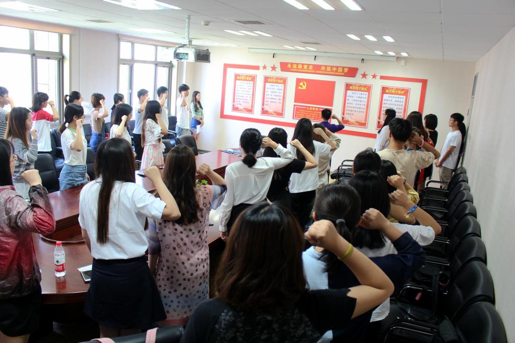 6月10日,公司党总支在明略楼311党员活动室举行了新发展预备党员入党宣誓仪式,参加宣誓仪式的有公司党总支副书记陈杰老师、系党总支专职组织委员黄义乾老师和2018年12月及2019年5月新发展的预备党员。其中,黄义乾老师担任领誓人,陈杰老师担任监誓人。