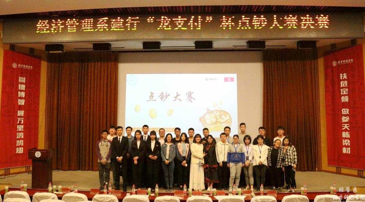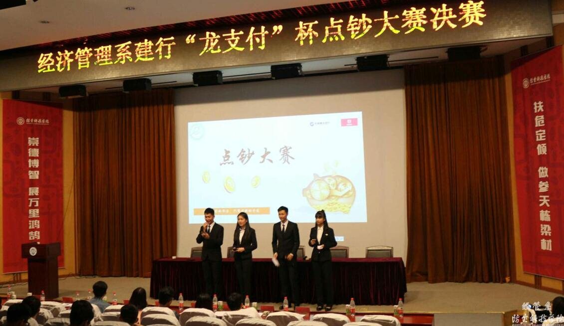 为了增加同学们学习专业技能的机会,提高老员工综合素质,营造良好的校园文化气息,让同学们能够到社会中尽早适应飞速发展的时代,经济管理系员工会外联部于4月23日晚7:00,在图书馆报告厅举办了经济管理系第二届建行“龙支付”杯点钞大赛决赛。九位过五关斩六将的选手们,携各自亲友团参赛。到场的评委嘉宾有:经济管理系党总支书记谢长旺老师,经济管理系团总支书记郑建锋老师,中国建设银行燕郊支行邱玉龙主任,以及经济管理系员工会主席及各部部长们。
