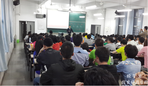 2014年4月29日,19:30,工商管理教研室郗蒙浩老师邀请三河因派克公司副总经理赵龙德来校为工商管理专业员工做讲座,教研室主任李志伟老师和辅导员赵江涛老师参加。赵总向员工讲述了他从1988年大学毕业至今的工作历程,以及自己35岁坚持学习,一直到现在公司副总的经历,站在一个企业领导者的角度向员工详细阐述了应该如何去做,告诫员工毕业后勿眼高手低,一切着眼于实际,并且要永远都怀着一颗学徒的心去学习、接纳新事物,最后,赵总与员工积极互动,解答同学们的各种问题,让员工受益匪浅。