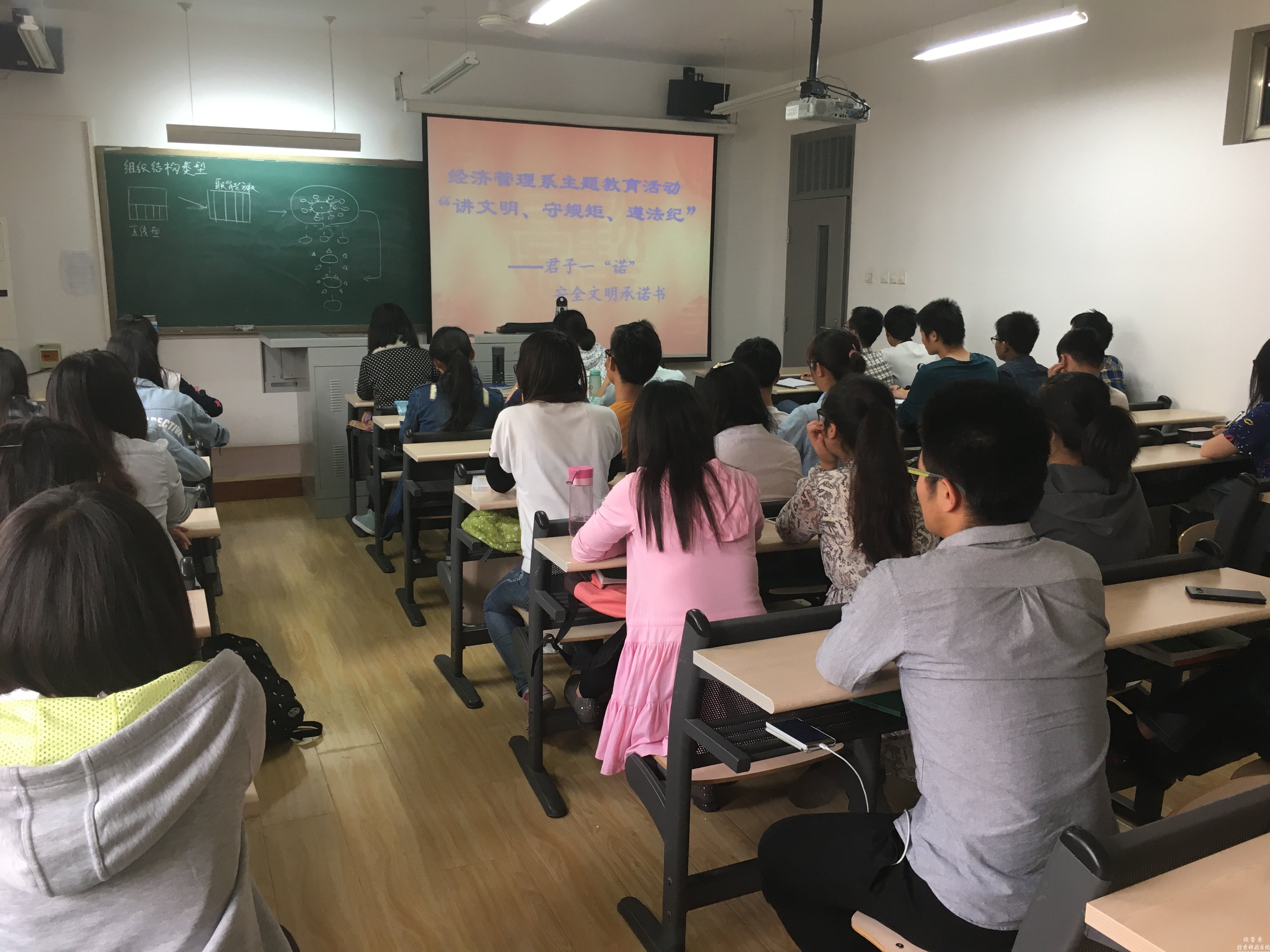 为进一步响应公司“讲文明,守规矩,遵法纪”主题教育活动的号召,也为进一步加强老员工安全文明教育,引导老员工树立安全文明意识,经济管理系于4月中旬开始,陆续在员工中开展“君子一诺”——签订“安全文明承诺书”主题班会教育活动。