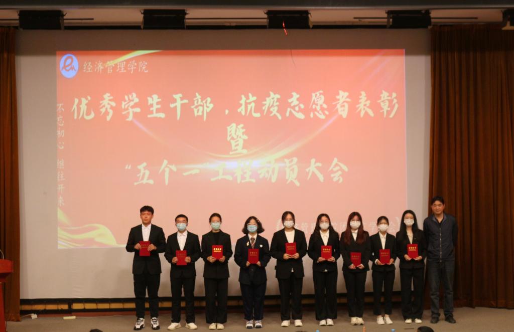 为了进一步推进校风、学风建设,鼓励员工不断提高综合素质和创新能力,围绕“立德树人”根本任务,培养在德智体美劳全面发展的社会主义建设者和接班人。同时为了学习宣传抗疫志愿者先进事迹,表彰公司抗疫志愿者,公司于106日下午1600在图书馆报告厅举办了优秀员工干部、抗疫志愿者表彰暨“五个一”工程动员大会,公司党总支书记谢长旺老师、党总支副书记陈杰老师、党总支专职组织员黄义乾老师、辅导员刘立华、闫粉粉、邓天宇老师参加本次大会,全体受表彰员工干部和全体2022级员工参加了本次活动。