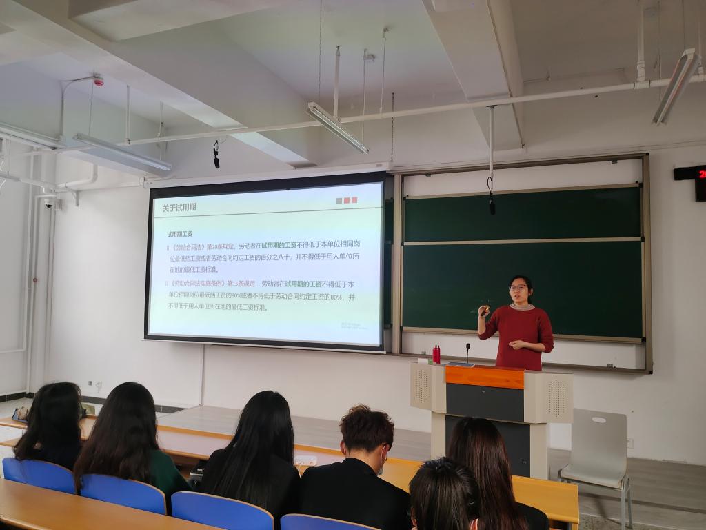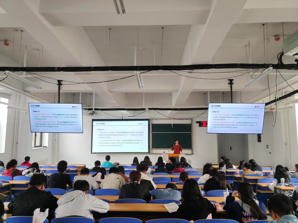讲座内容主要包括:工作时间、工资、劳动合同、试用期、劳动关系解除等相关的法律常识。李翠老师从概念入手,由浅入深的向我们诠释了入职相关的劳动法律知识。虽然相关内容距离大三大四的员工会比较近,但大一大二的员工也通过此次讲座了解到了之前从未了解到的新知识,在座的各位都收获颇丰。李翠老师运用大量的案例,带领我们实际分析情况,清楚辨别各种状况,也让我们能够更好地用法律保护自己的劳动权益。在现场李翠老师同时提了许多问题,师生的互动性非常高,亲切自然地开展了有效话题的同时,使整场讲座生动有趣。