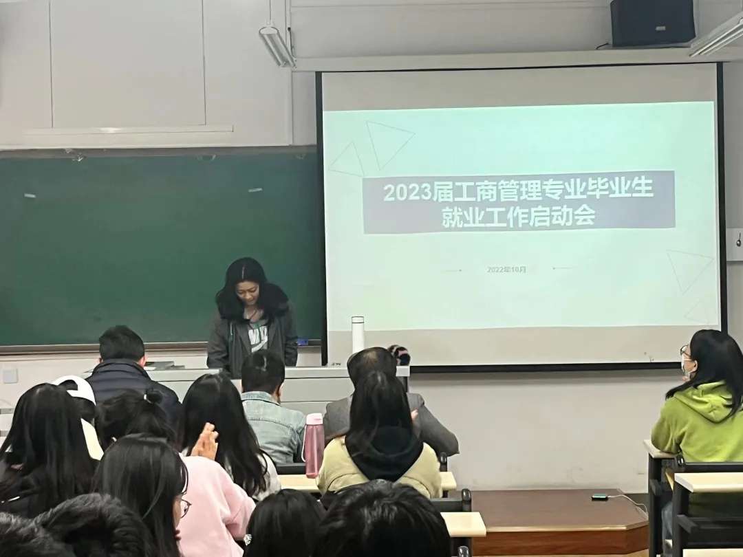 会议上,辅导员邓天宇老师给我们展示了19级工商管理专业毕业生就业意向统计情况,并且从“思想准备--转变就业观念”、“简历准备--认真写好简历”、“面试准备--掌握面试技巧”、“人脉准备--拓宽就业渠道”四个方面展开了讲解,建议同学们要积极参加招聘会,关注各方面就业信息,同时也要用好网申、网投这些正规渠道,用好人际关系,拓宽销售渠道,在每次面试后要总结好经验。其次,邓老师在就业信息登记方面也进行了详细的讲解。