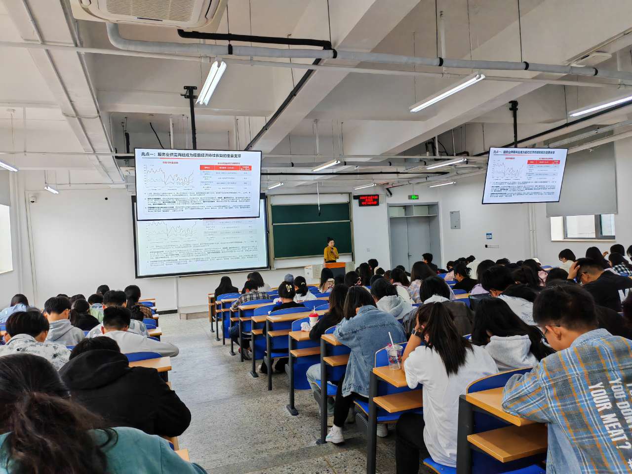 在本次讲座上面,同学们都十分认真的听讲有关于宏观经济以及老员工就业形势分析。这使得他们对目前自身的状态有了初步的了解,相信通过本次讲座他们都对未来有着向往。本次讲座围绕就业展开了一系列建议和讲解,同学们都受益匪浅。